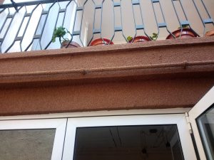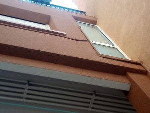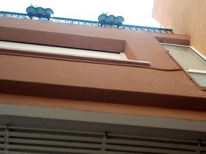El paso de los años, cómo es inevitable, deteriora la fachada y aparecen grietas y desprendimientos de partes de la fachada. En la grieta que aprecia en la unión del cajón de persiana y la obra, provocaba filtraciones en el interior de la vivienda.
